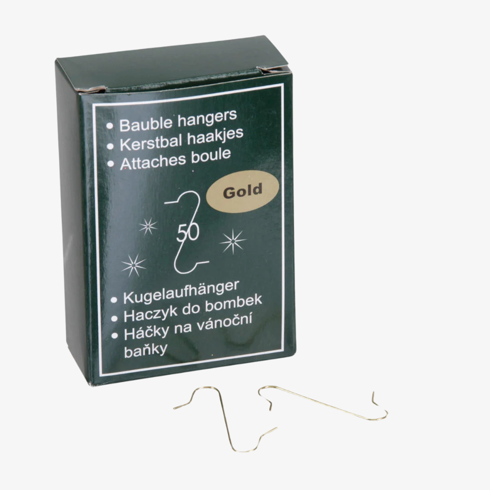 Kuldsed konksud rippuvate jõulukaunistuste jaoks.