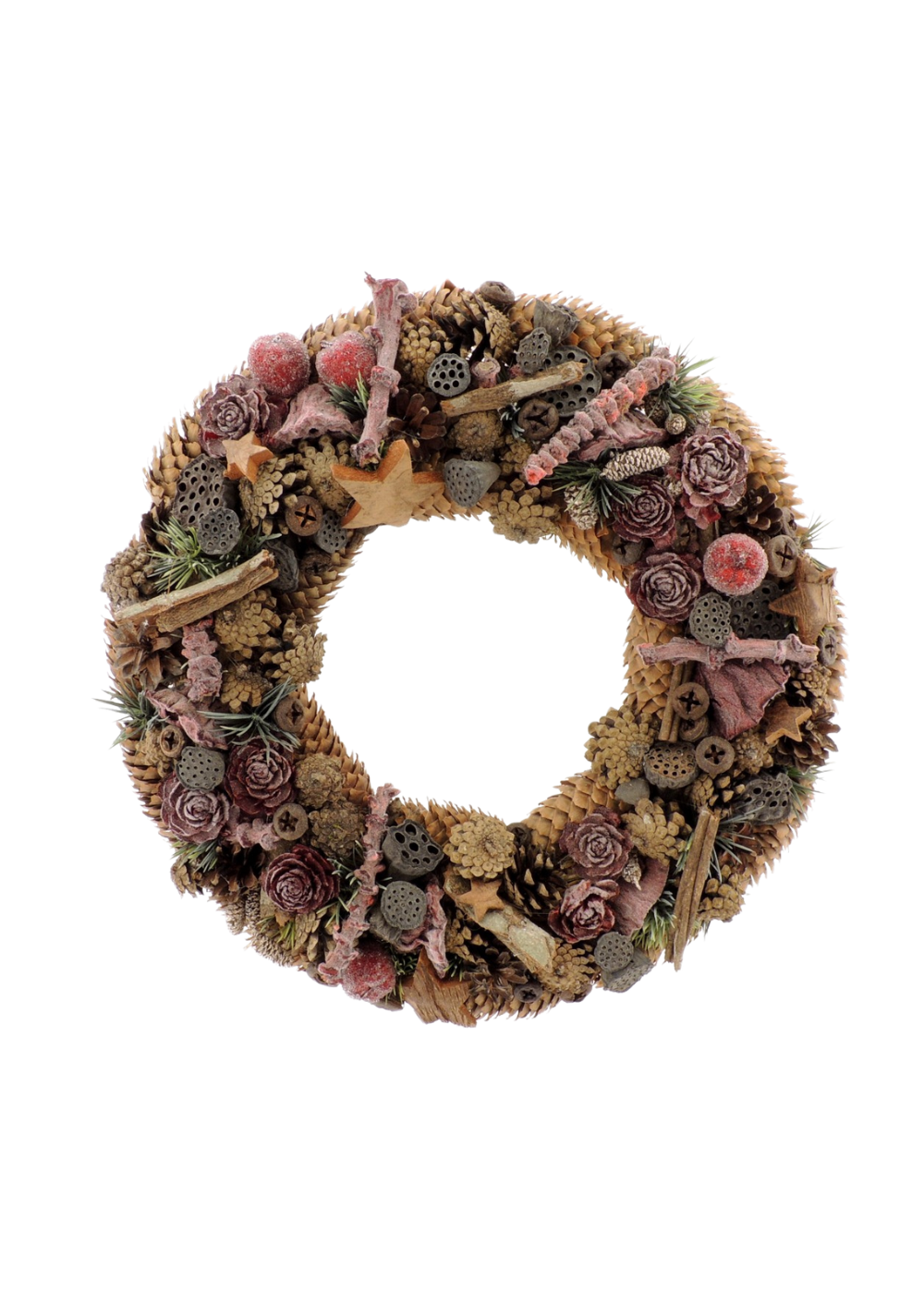 Kaunis jõuluhõnguline pärg looduses leiduvatest käbidest.