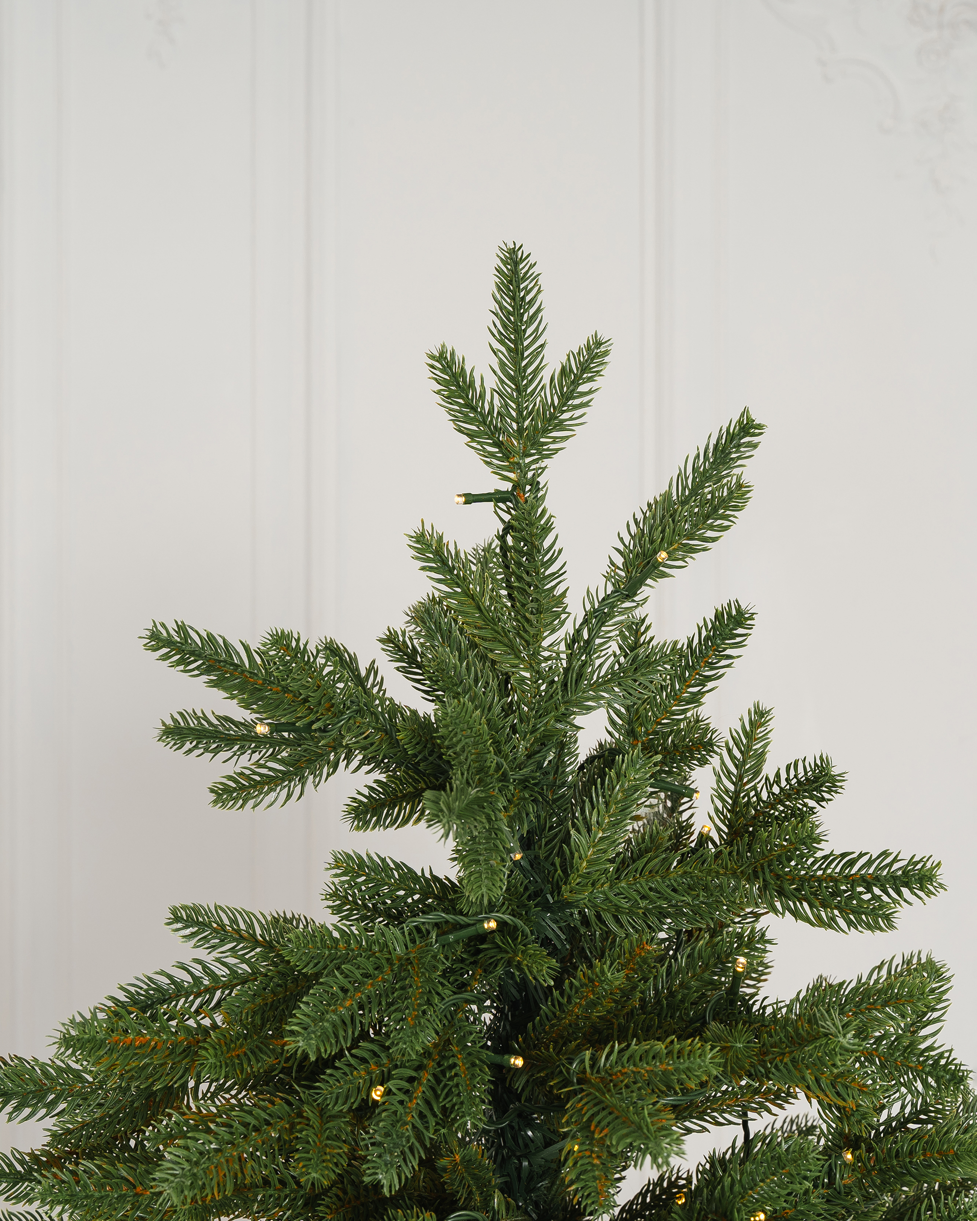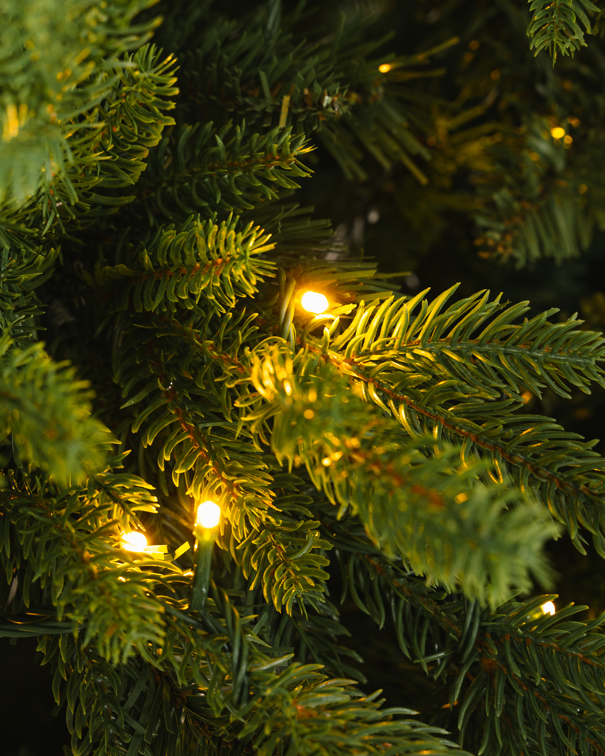 Tuuhea, tiheä ja silmiä hivelevä Fraser -tekokuusi LED-valoilla.